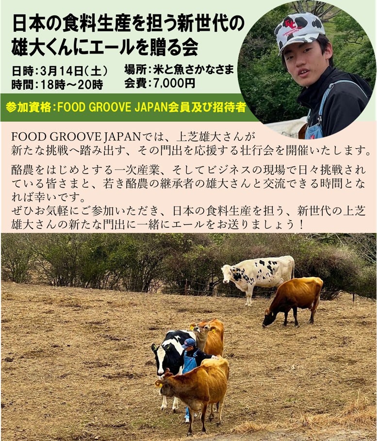 開催日 2026年3月22日(日) イベント名 梛木春幸氏×さかなさま ~心ふるえる食育の会~ 会場 米と魚 さかなさま日本橋茅場町店 参加条件 誰でも参加可能 参加費 昼の部:大人2500円子供1500円 夜の部:18000円 ※お支払いは当日にて現金のみ 詳細・予約はこちら