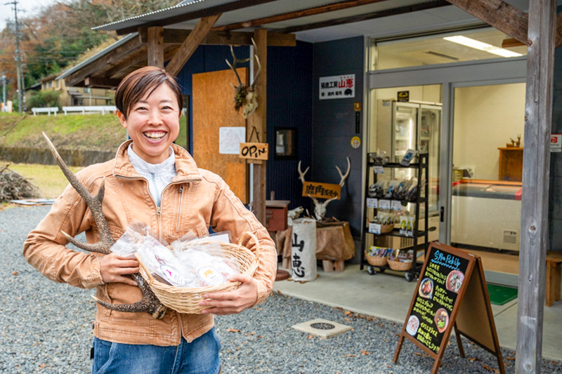 この問題解決に向け、【猪鹿工房 山恵】の井原綾子さんは、鹿をただ駆除するだけではなく、価値のあるジビエにしていきたいという思いのもと、自らも山に入り、猟を行い、鮮度と風味を追及したお肉の加工までも行っています。