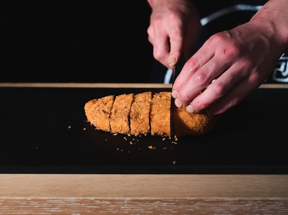 横瀬氏のとんかつは低温でじっくりと火入れをし、差後に高温で揚げることで、ジューシーかつまわりがサクサクになるのが特徴で、低温で火入れすることにより、柔らかい歯ごたえのとんかつとなっています。