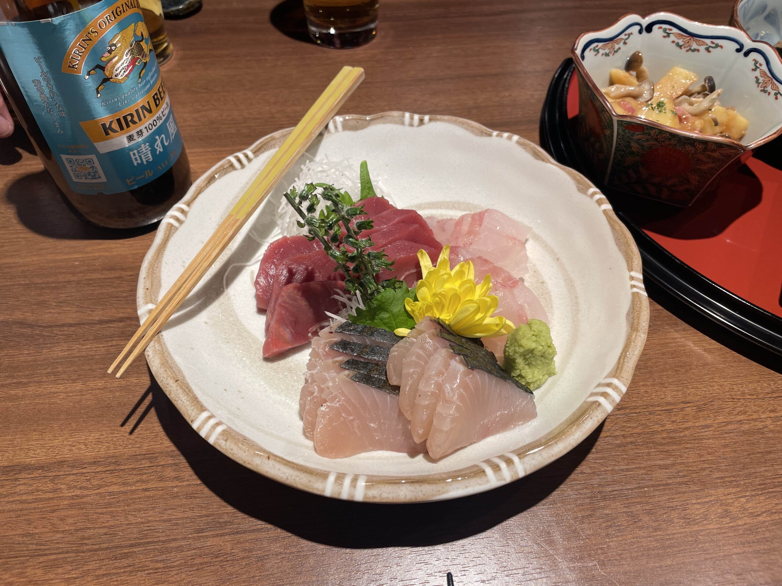 - お造り3種盛り合わせ(本マグロ、鰆、真鯛)